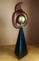 DEL DRAMA A LA COMEDIA - bronce/acrílico y madera con hoja de plata - 55x65x18 cm - 13.6 kg - 2017